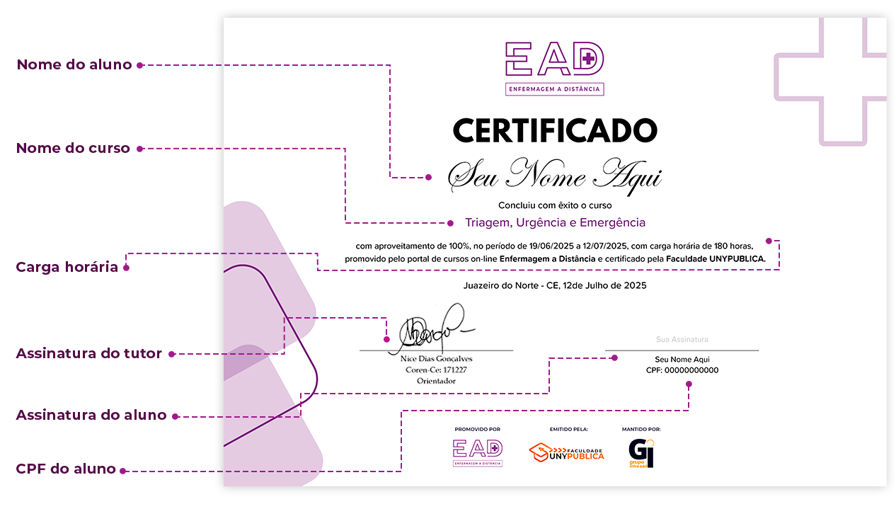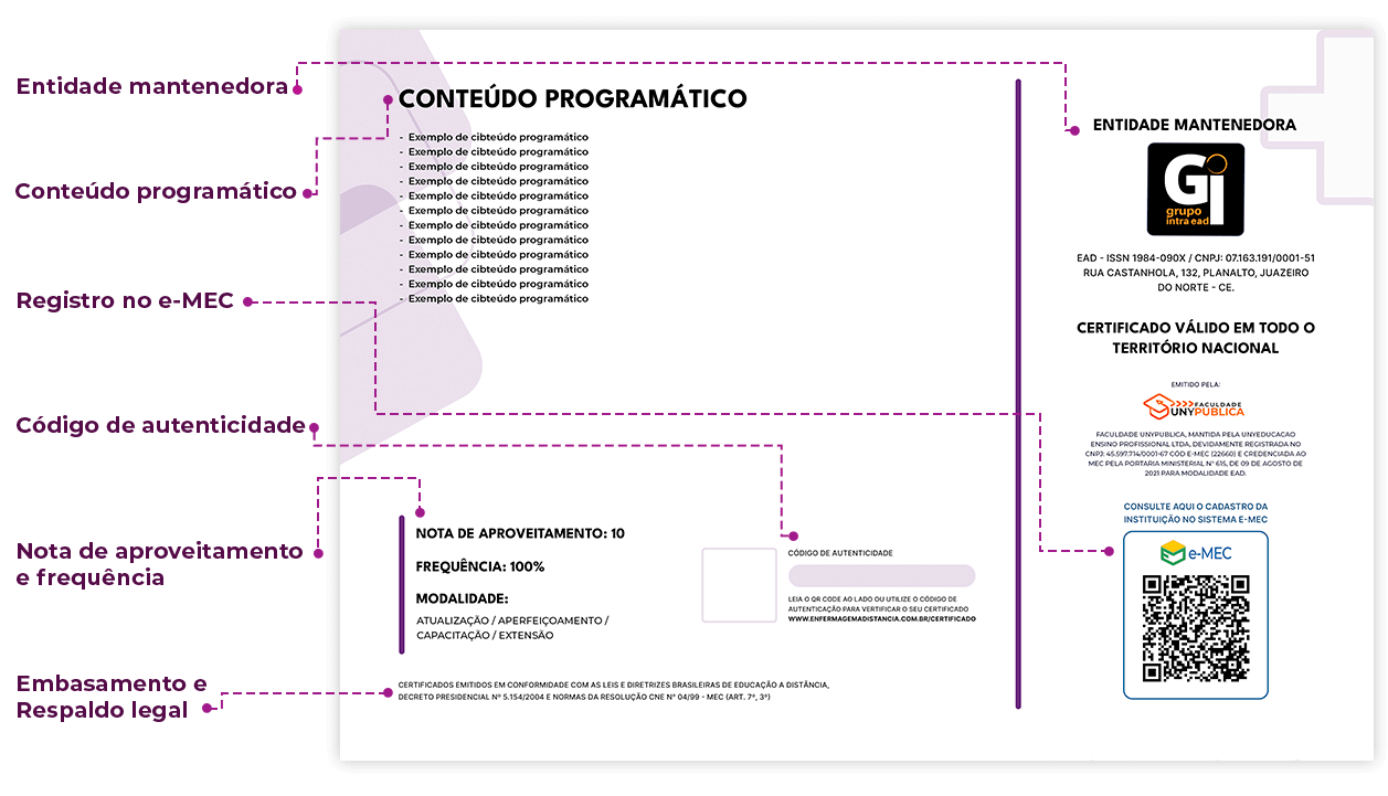 Os certificados da plataforma EAD - Enfermagem a Distância são válidos em todo o território nacional e são emitidos pela UNYPÚBLICA, uma instituição reconhecida pelo Ministério da Educação (MEC) e parceira do EAD - Enfermagem a Distância.